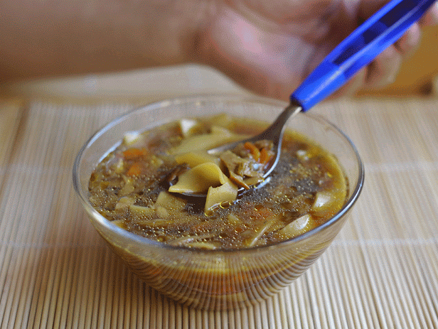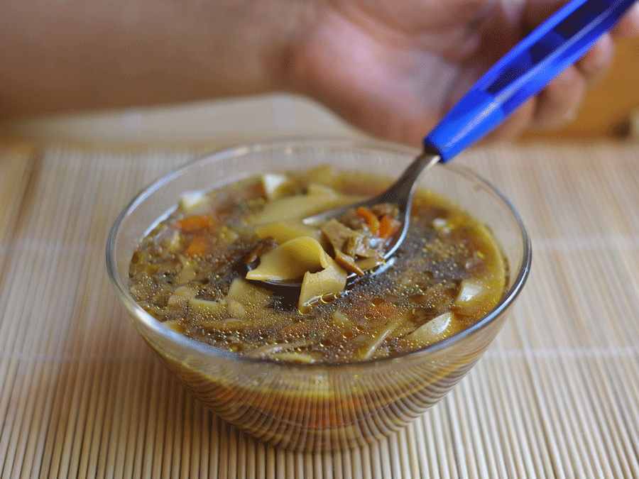 | Куриный суп с фасолью, кабачком, макаронными буковками и картофелем |